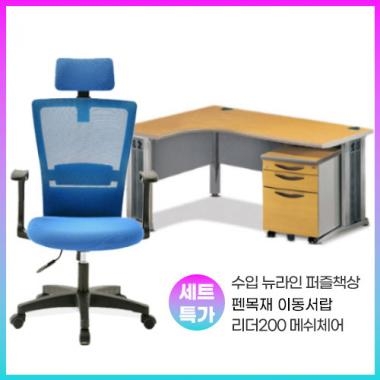 [세트특가]수입뉴라인퍼즐책상+펜목재서랍+리더200의자